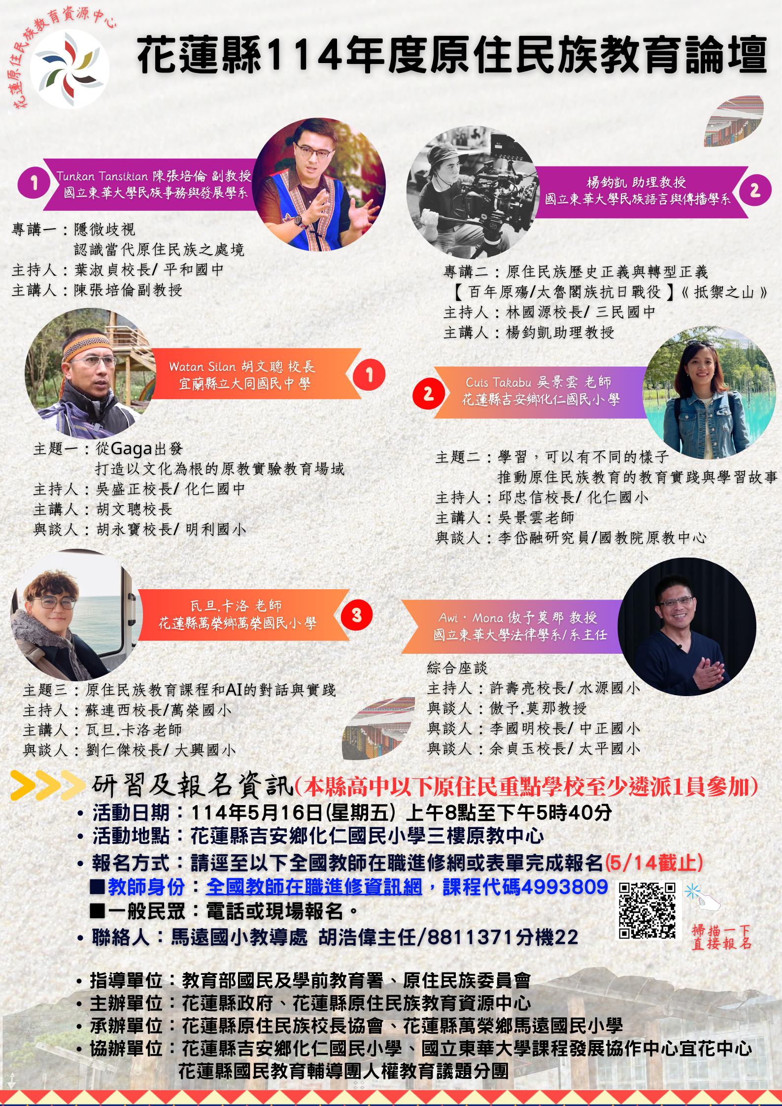 一、依據 本府 114 年 4 月 25 日府教課字第 1140081526 號函諒達、 113 學年度原住民族教育資源中心計畫及 113 年花蓮縣原住民族校長協會理監事會議決議事項辦理。