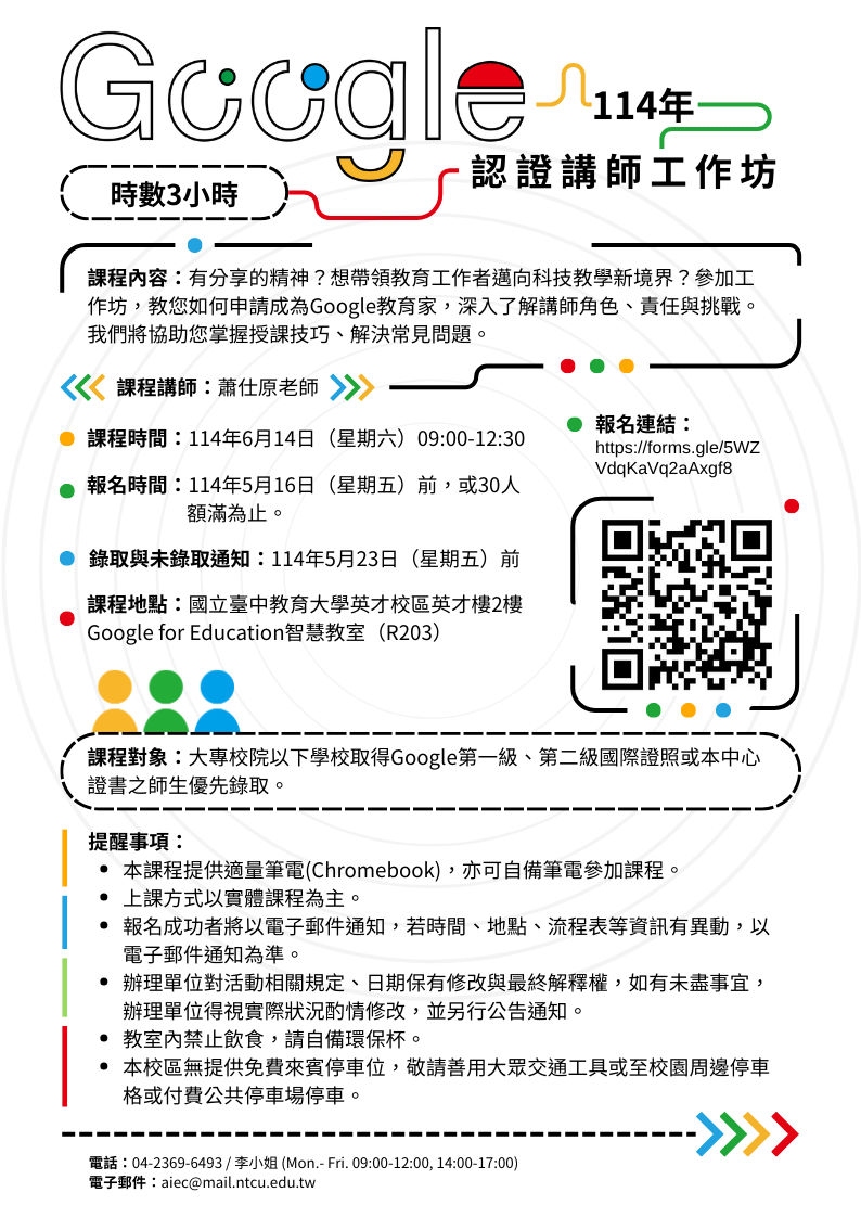 四、如有相關問題,請電洽朱玉筑小姐,電話:(02)66396688#533 ,電子信箱: chu1128@tea.ntue.edu.tw 。