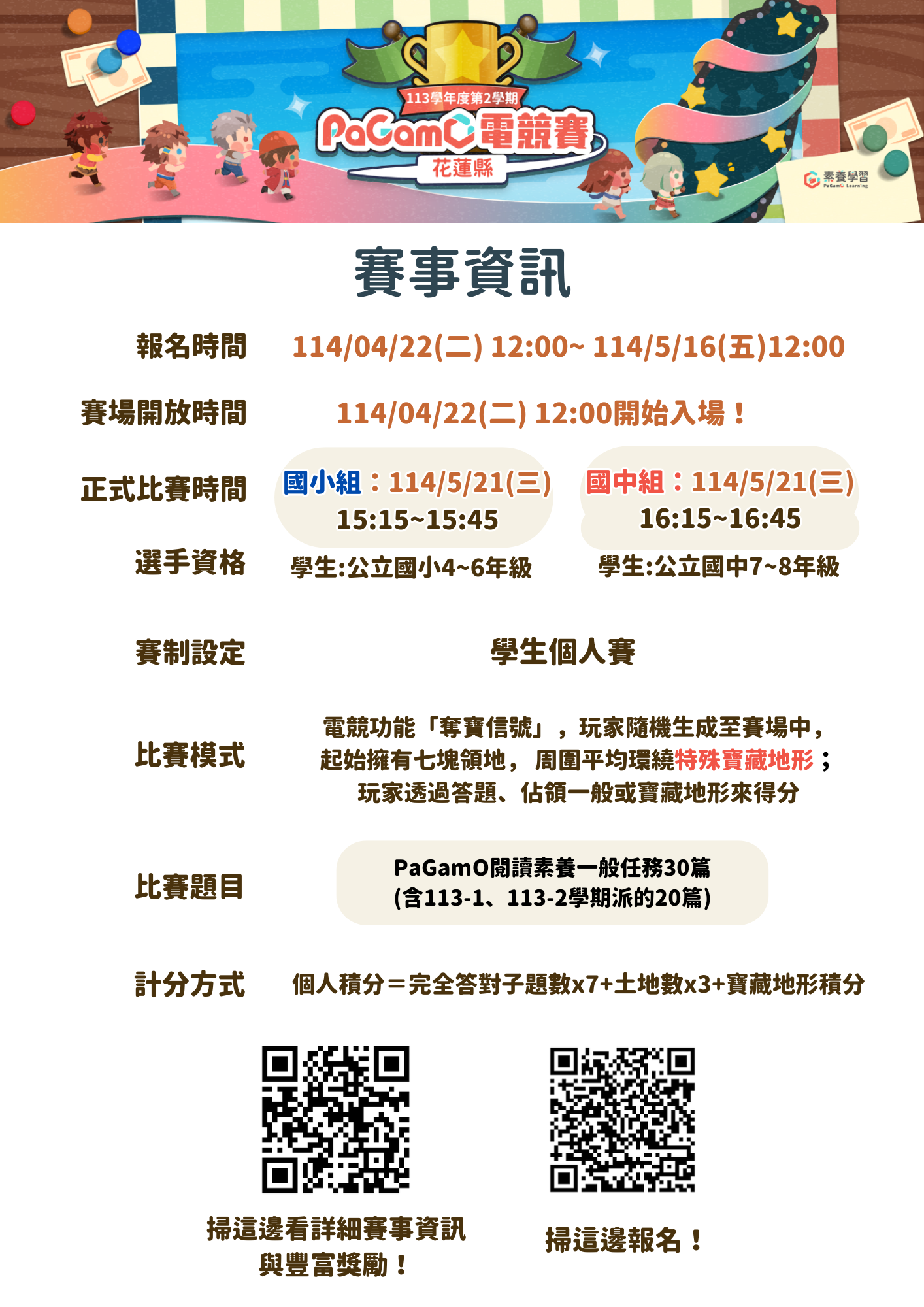 花蓮縣 113 學年度 PaGamO 素養品學堂電競賽