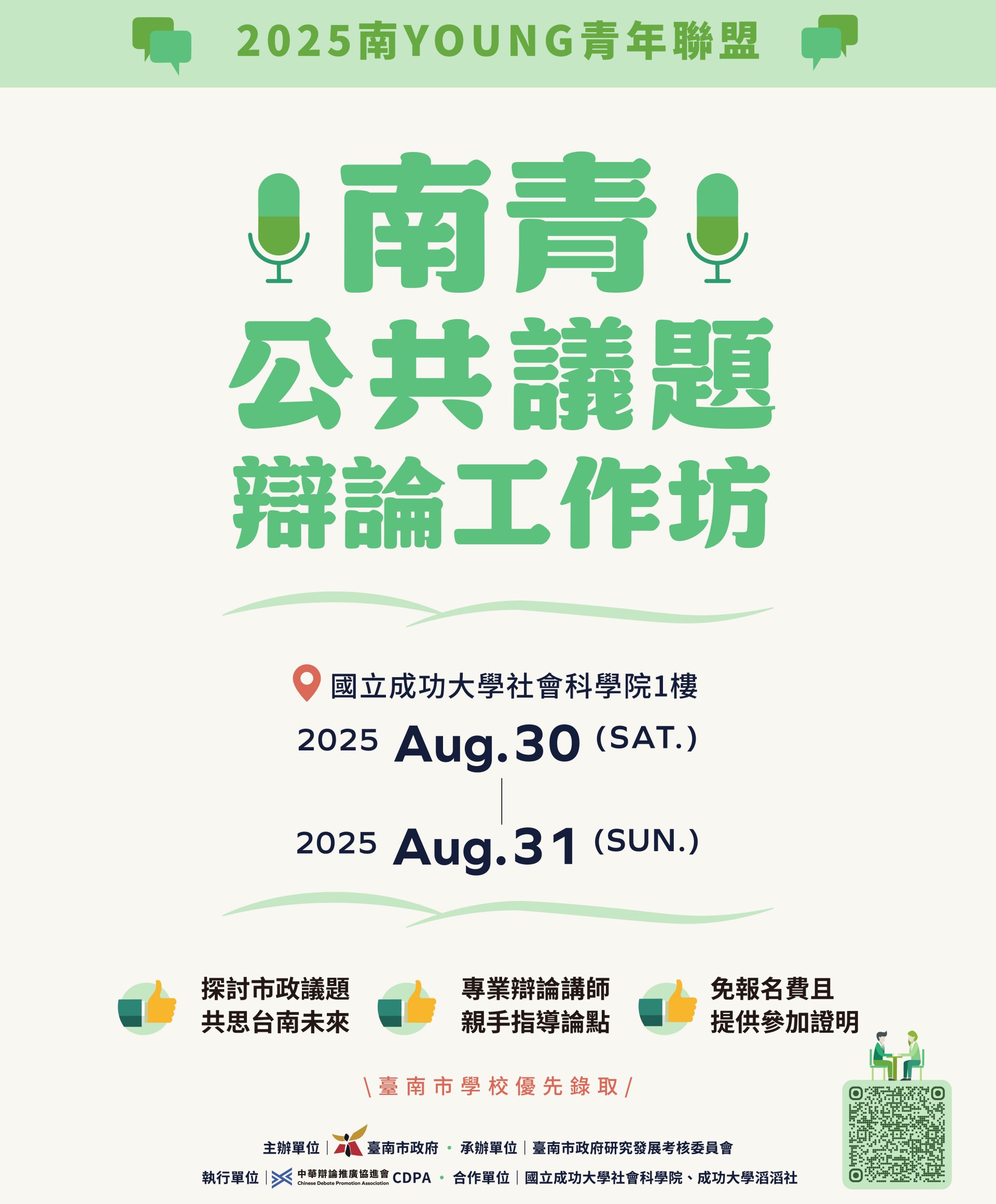 四、活動對象:對公共事務有興趣之全國大學、高中職在學學生(臺南市學校優先錄取),最多招募 36 名學員。