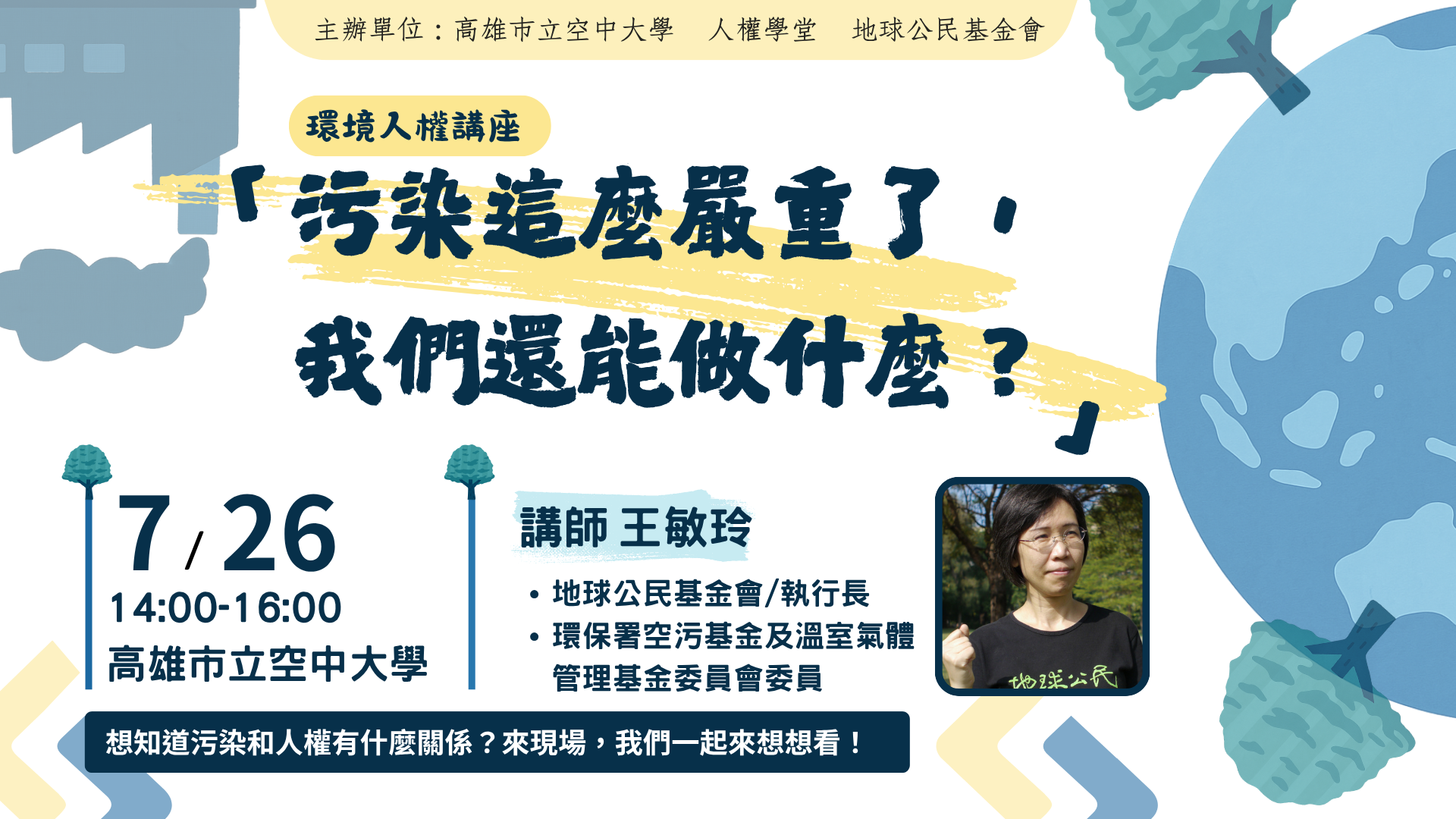 (一)講座名稱:「汙染這麼嚴重了,我們還能做什麼?」。