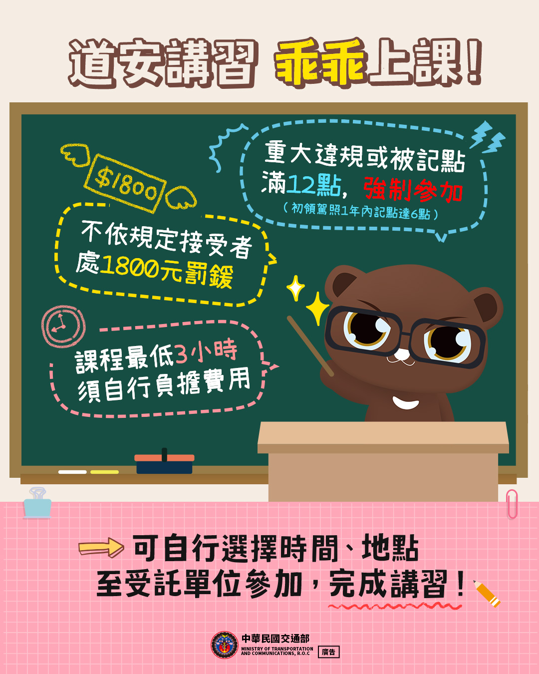 交通部持續更新交通安全教育及相關行人安全用路文宣素材於網站(https://168.motc.gov.tw/),請各校加強應用及宣傳,請查照。