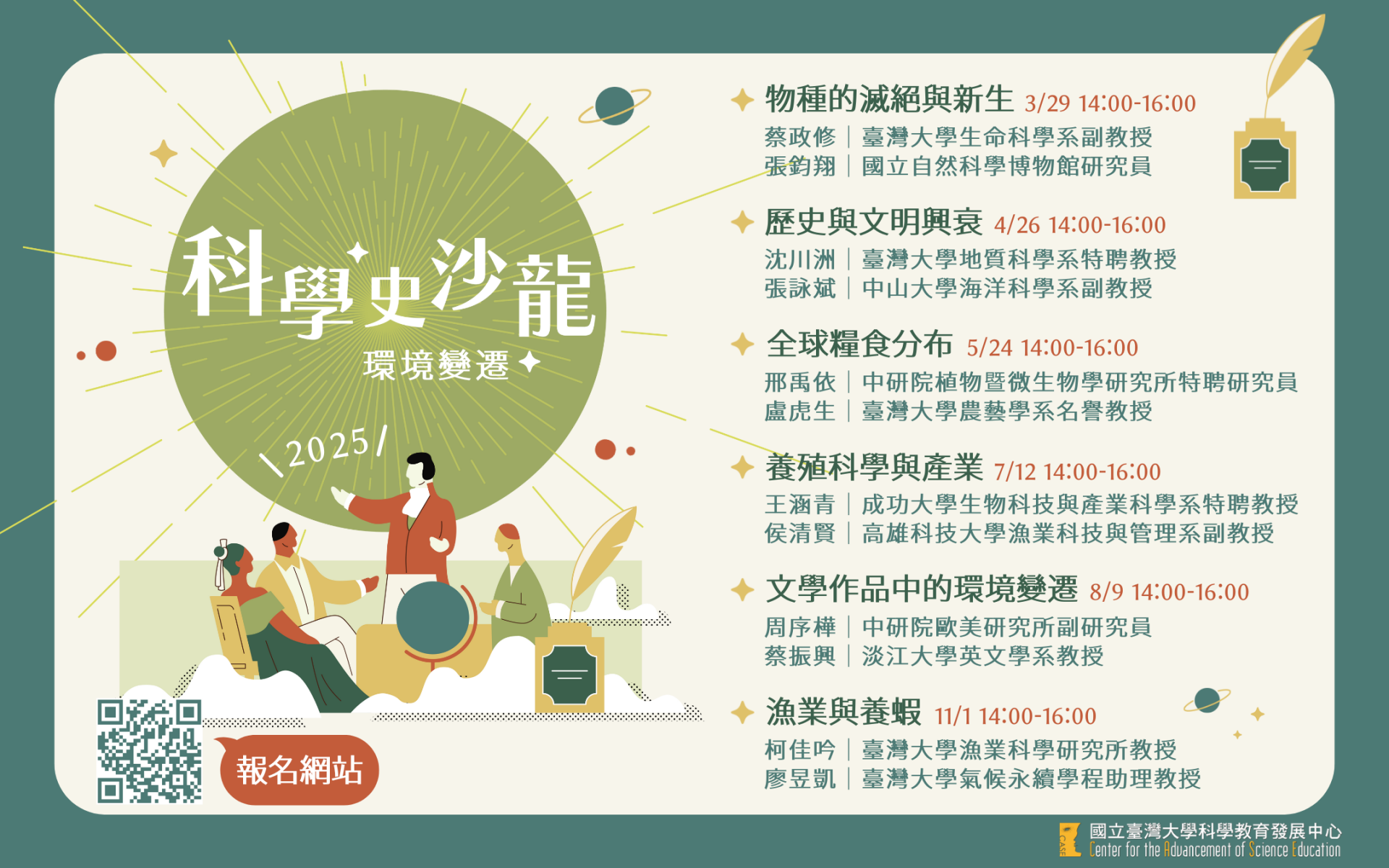 四、該系列講座於該校思亮館國際會議廳辦理,活動免費參加。每場可申請 2 小時研習時數證明,依國立臺灣大學科教中心規定辦理。參與講座請事先報名(各場次陸續開放): https://www.accupass.com/organizer/detail/1911260714385254030800 。