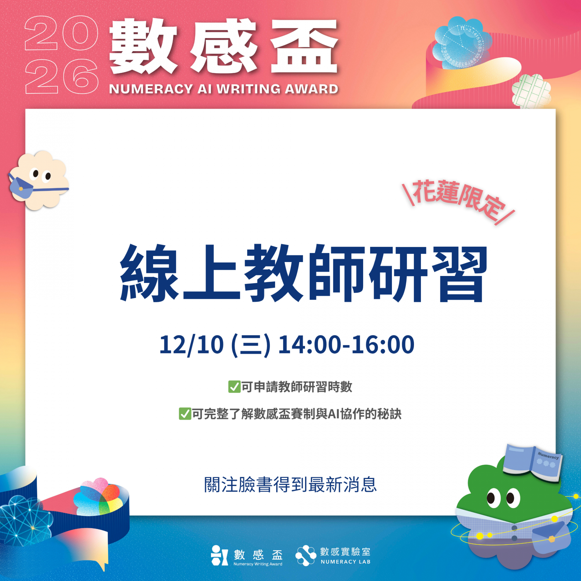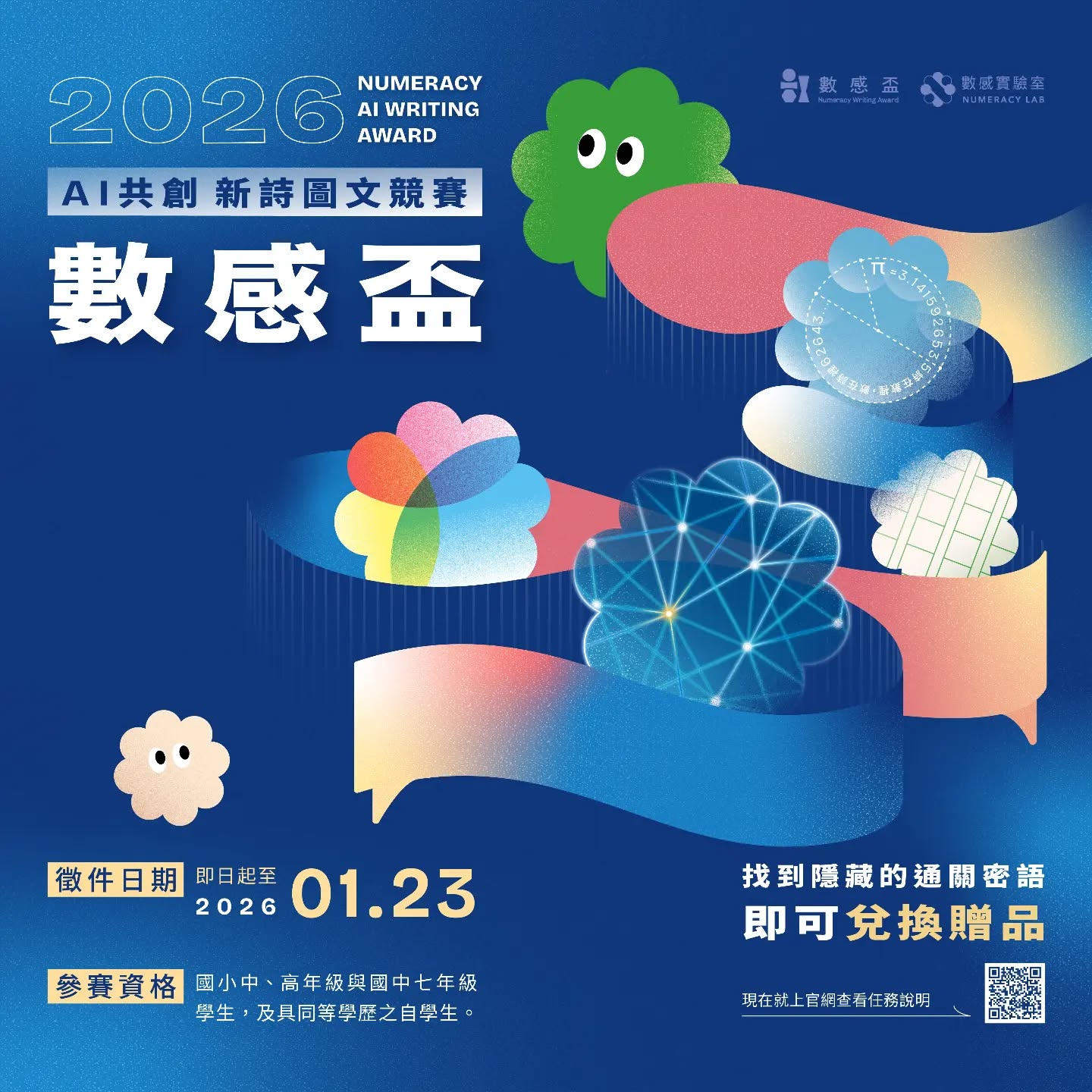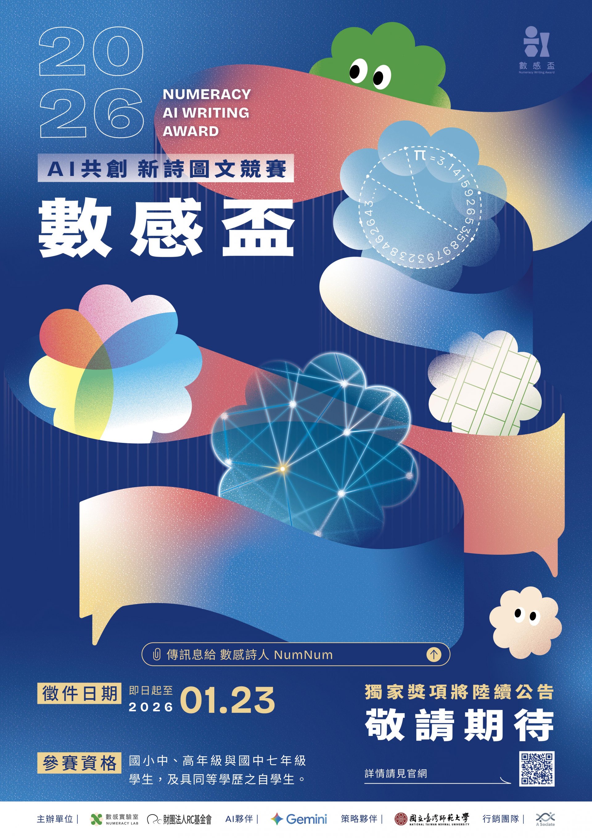 - AI 共創新詩圖文競賽相關事宜請參考附件,官方網站: https://ai-award.numeracylab.com/。